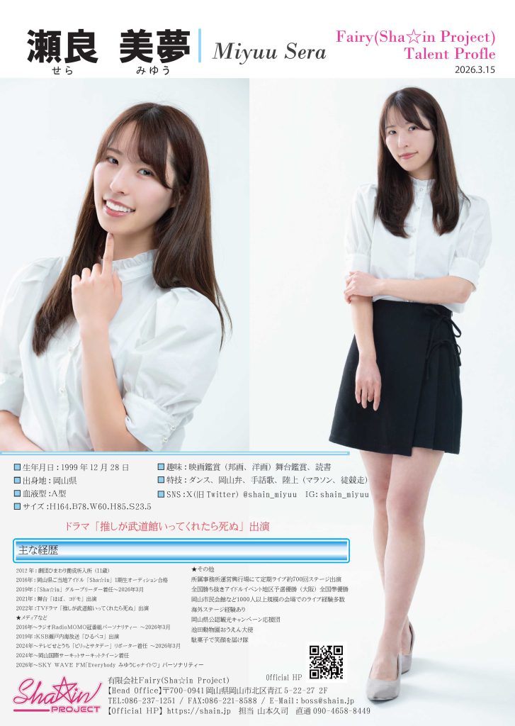 メンバー紹介:瀬良 美夢(せら みゆう) インフォメーション 東京が活動拠点になっております瀬良美夢、単独の出演依頼も承っておりますお問い合わせページよりお気軽にお問い合わせください 瀬良美夢、宣材資料は こちら よりご覧ください